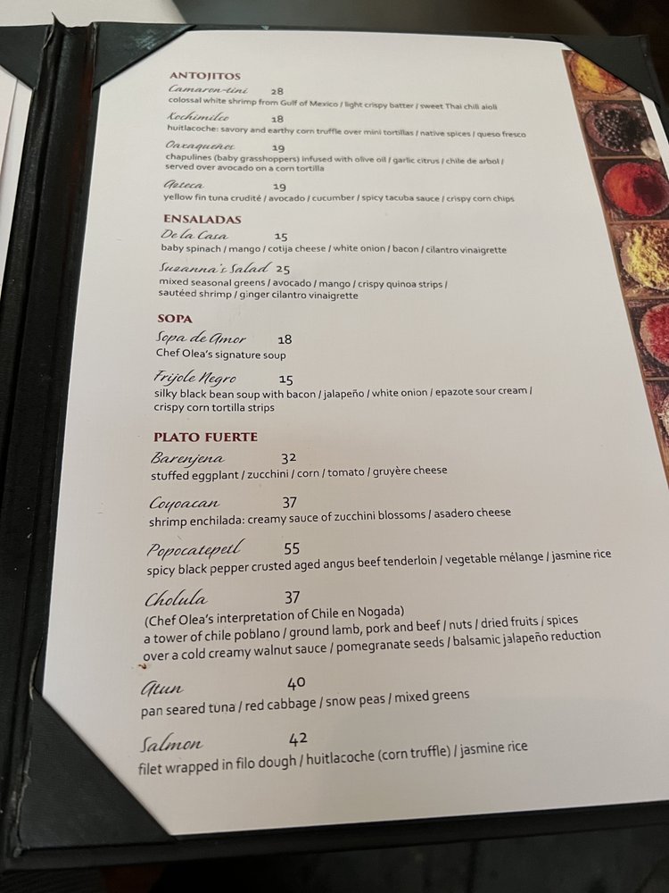 Nestled in the heart of Santa Fe, Sazón invites you to experience a vibrant blend of authentic Latin American and Mexican flavors. Guided by renowned Chef Fernando Olea, the menu is a celebration of exquisite dishes crafted with fresh ingredients and a touch of creativity. Begin your culinary journey with the Sopa de Amor, an enchanting signature soup that captivates the senses. For the main course, indulge in the Coyoacan shrimp enchilada or the Popocatepetl, a delectable black pepper-crusted beef tenderloin.